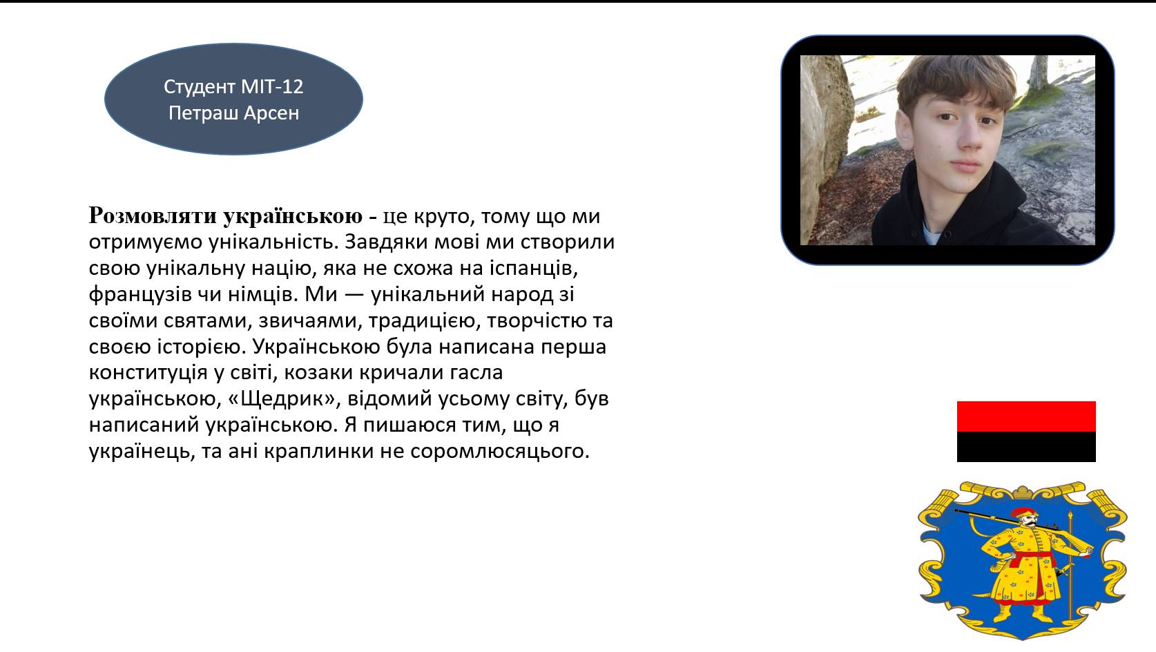 Наші студенти освітньої програми «Менеджменту у сфері інформаційних технологій» долучилися до Тижня української писемності та мови та презентували свої думки про те, чому важливо розмовляти українською мовою.